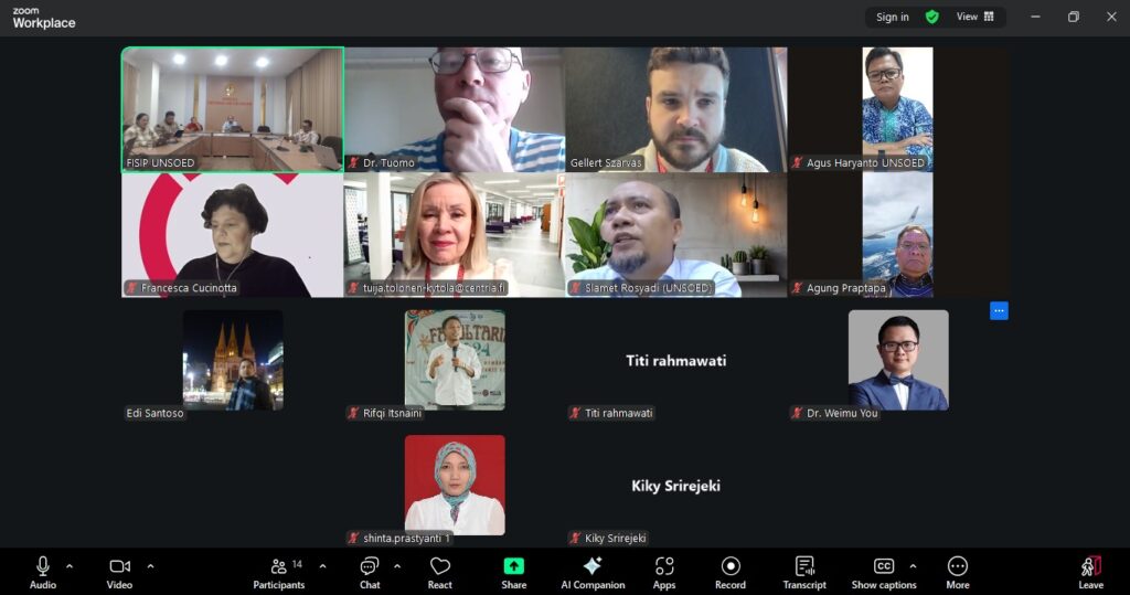 Purwokerto – Fakultas Ilmu Sosial dan Ilmu Politik (FISIP) Universitas Jenderal Soedirman (Unsoed) terus memperluas jejaring internasional melalui penjajakan dan penguatan kerja sama strategis dengan Centria University of Applied Sciences, Finlandia. Pertemuan yang berlangsung dalam suasana akademik yang konstruktif ini menjadi langkah awal menuju kolaborasi konkret di bidang riset, pertukaran dosen, serta mobilitas mahasiswa.
